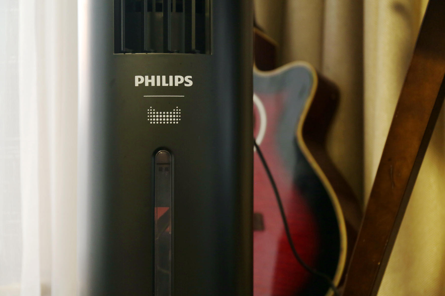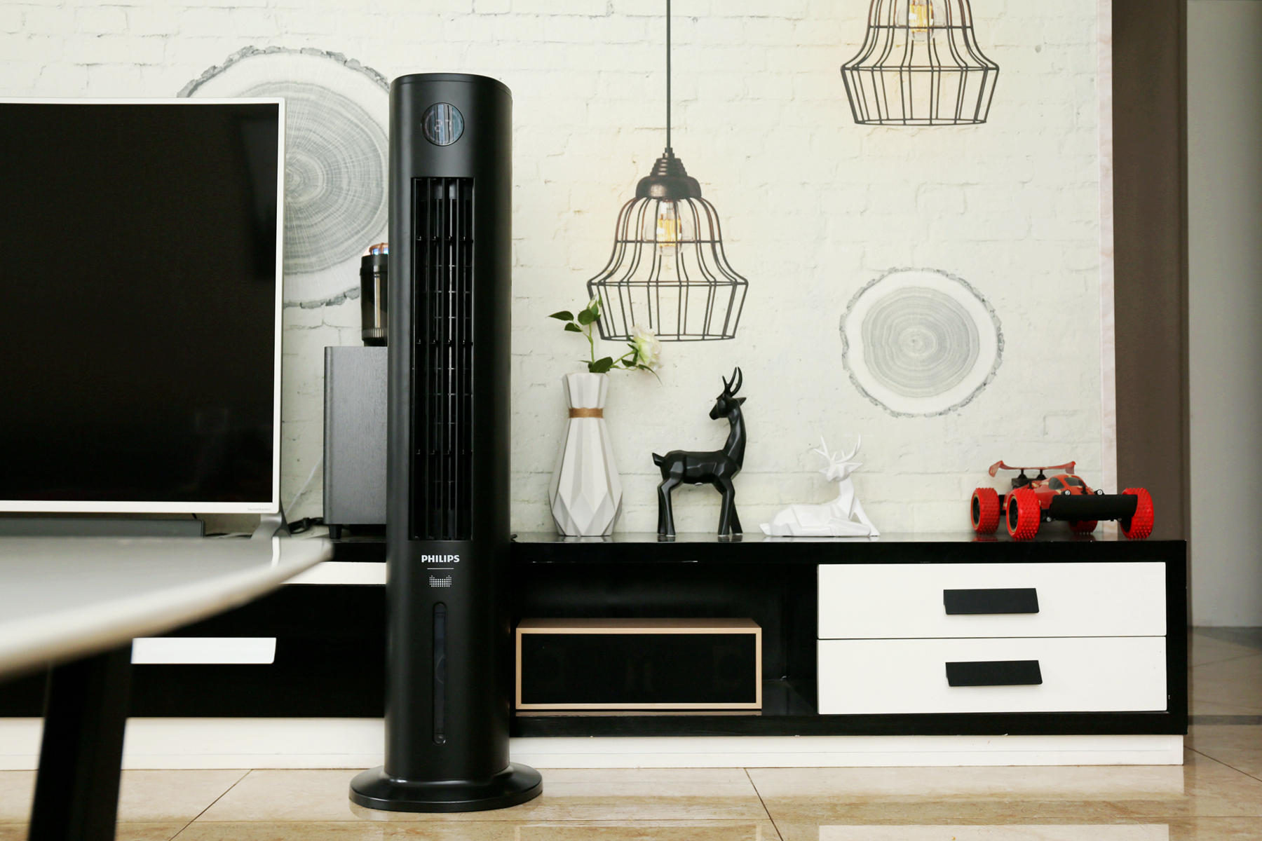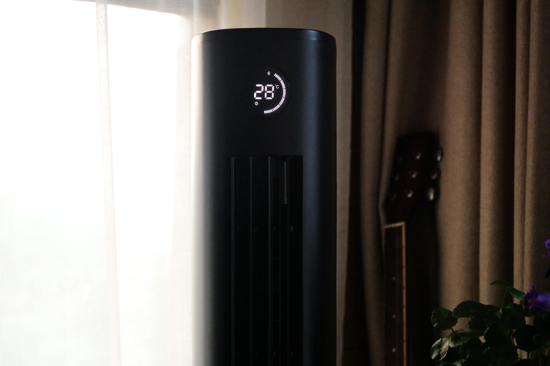 飞利浦ACR3144BT空调扇的外观很像立式空调的缩小版,在正面配备了一块圆形显示屏,能够显示设备状态,风速,室内温度等等情况。