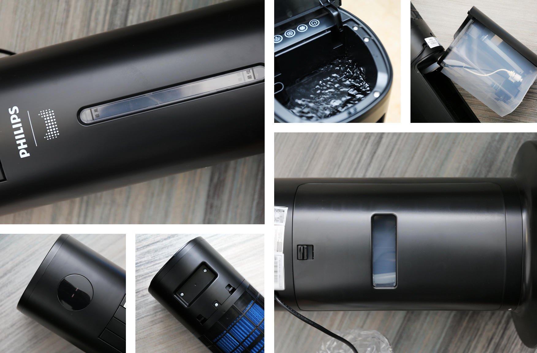 其他细节方面,飞利浦ACR3144BT空调扇在顶部设计有一个弹出式加水舱,底部配合有一个4.5L容量的水箱,正面设计有一条水位可视窗口,方便查看水量情况,背面采用抽拉设计,能够对水箱进行加水,加冰等操作。