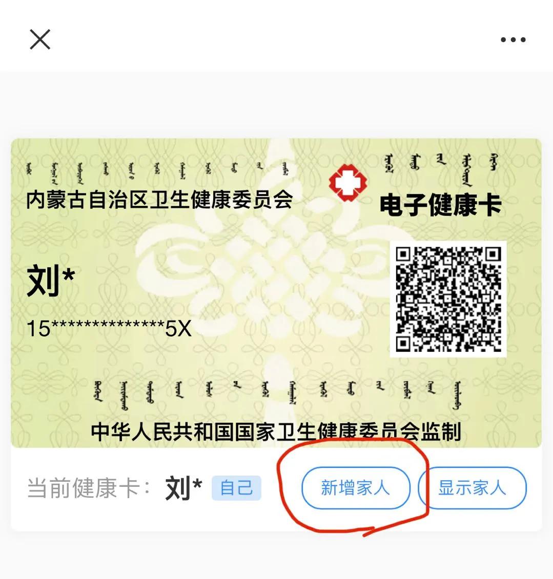 2进入之后点击“允许”后进入本人“电子健康卡”页面——点击新增家人。