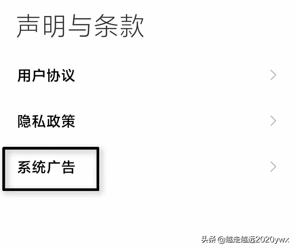 2)进入“设置” 点击“我的账号” 下滑 点击开“申明和条款” 点击该项下的“系统广告”关闭