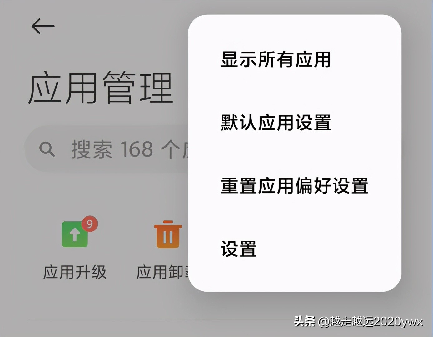 4)设置---“应用设置”---“应用管理”---“应用管理右上角三个点”选择“设置”