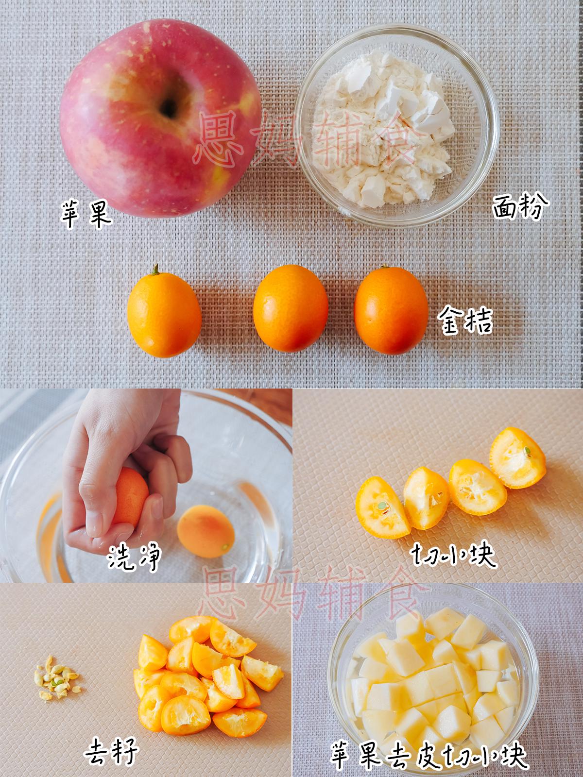 今天带来金桔汤+ 金桔苹果小软饼,苹果和金桔中和吃起来一点也不酸,特别清爽,感冒咳嗽抵抗力差的宝宝记得试一试