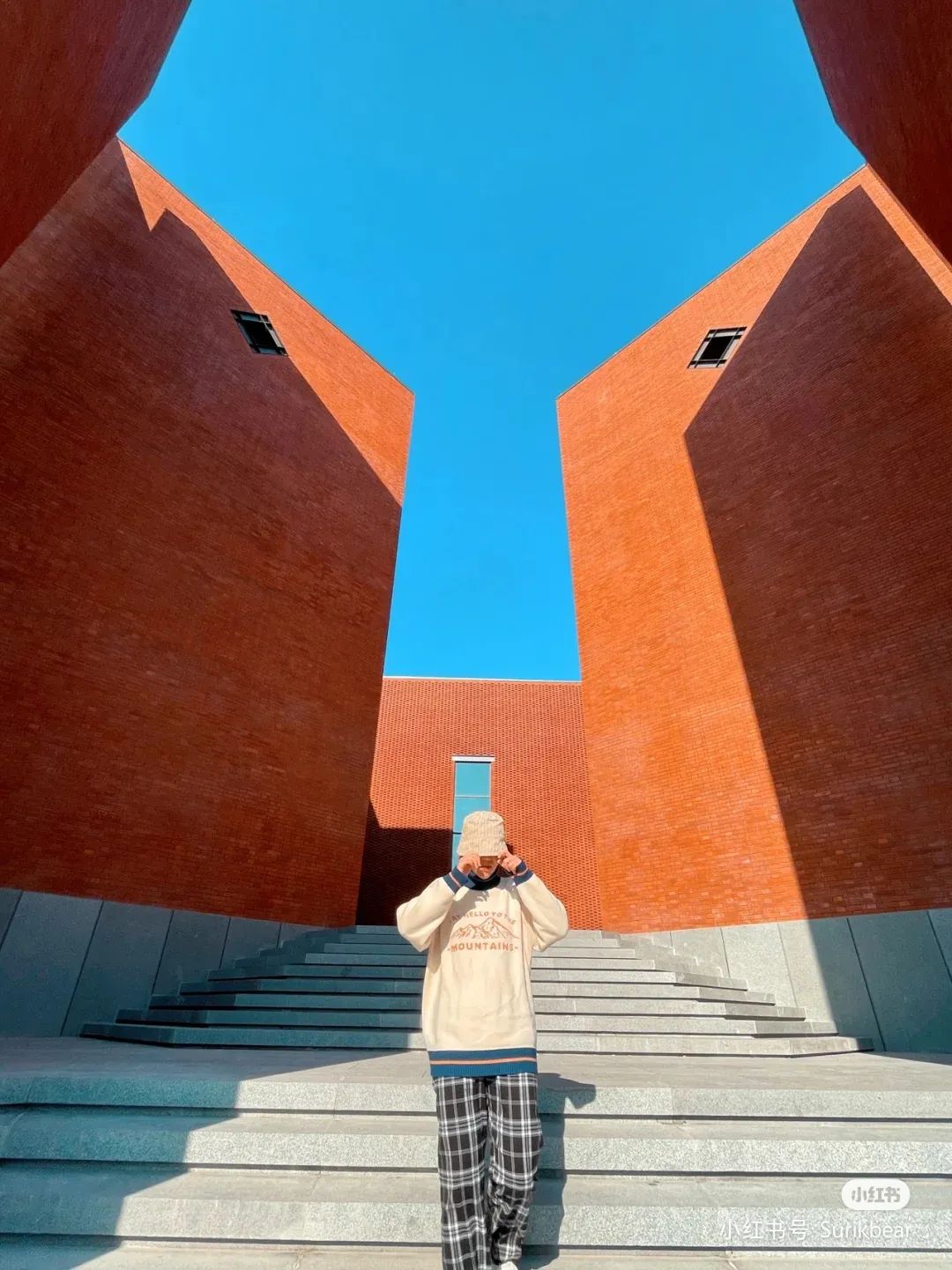 “由红砖砌成的红墙,让每个角落的结构与线条都形成鲜明的对称,用手机拍照就足够秒变时尚片”