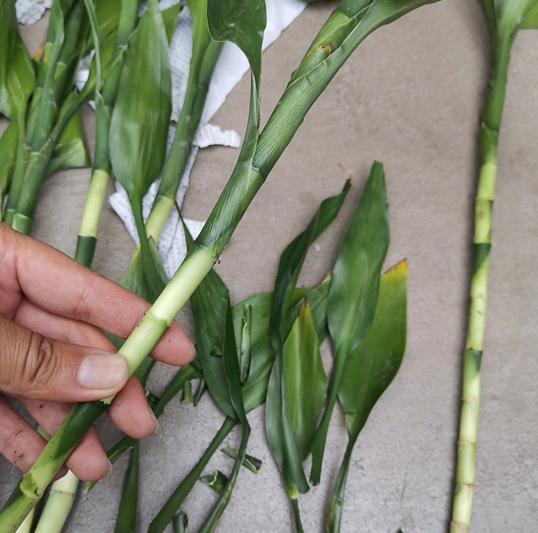 富贵竹并不是真正的竹子,它喜欢阴凉通风的环境,在养护时间最怕强光直晒叶面,经强光暴晒后,叶子会出现干尖发黄干枯的现象。