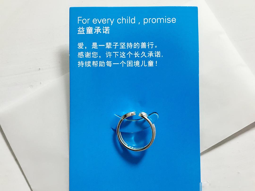 我选的第一个,然后再去填每月捐助的金额,最低是三十,别的金额可以自己填写,我觉得金额写自己承受范围内的就好,毕竟做善事心意为主。确认完个人信息在等一到两个月就可以收到信物了,里面有一张证书、一封感谢信和一个戒指,戒指超级好看,而且很有意义。