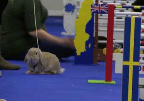 兔兔的跨栏障碍赛起源于马术的障碍赛,现代意义上的第一届兔子障碍赛起源于70年代的瑞典俱乐部。之前狂丸讲到的Flora和Cherie两只兔兔,和她们的铲屎官,就是来自比赛的发源地瑞典。