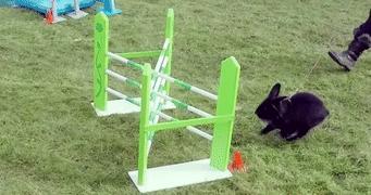 不过,并不是所有兔兔都能配合比赛,认真跳过栏杆。很多网友都说,想让自家兔子听话跑起来、跳起来,太难了。