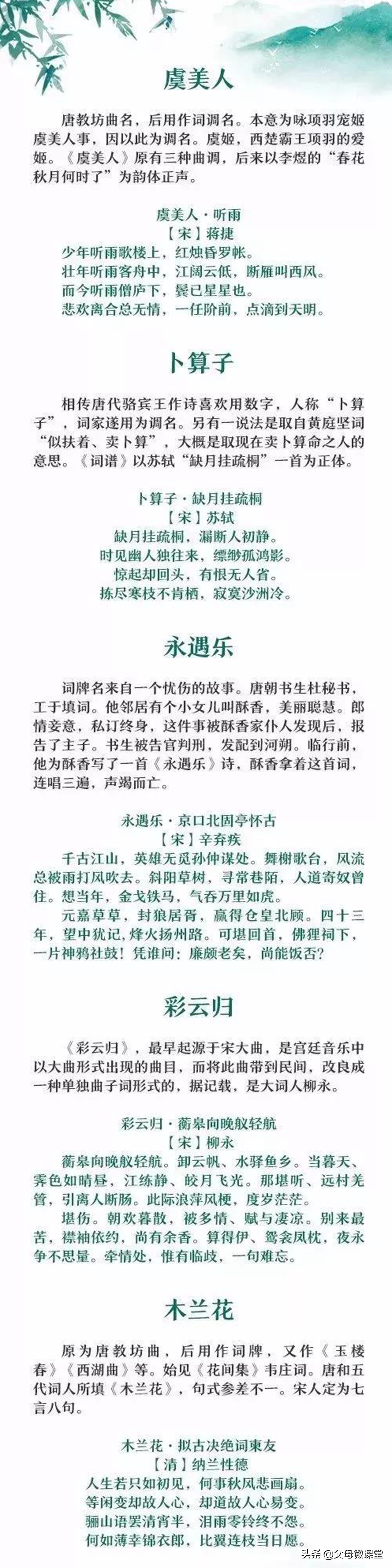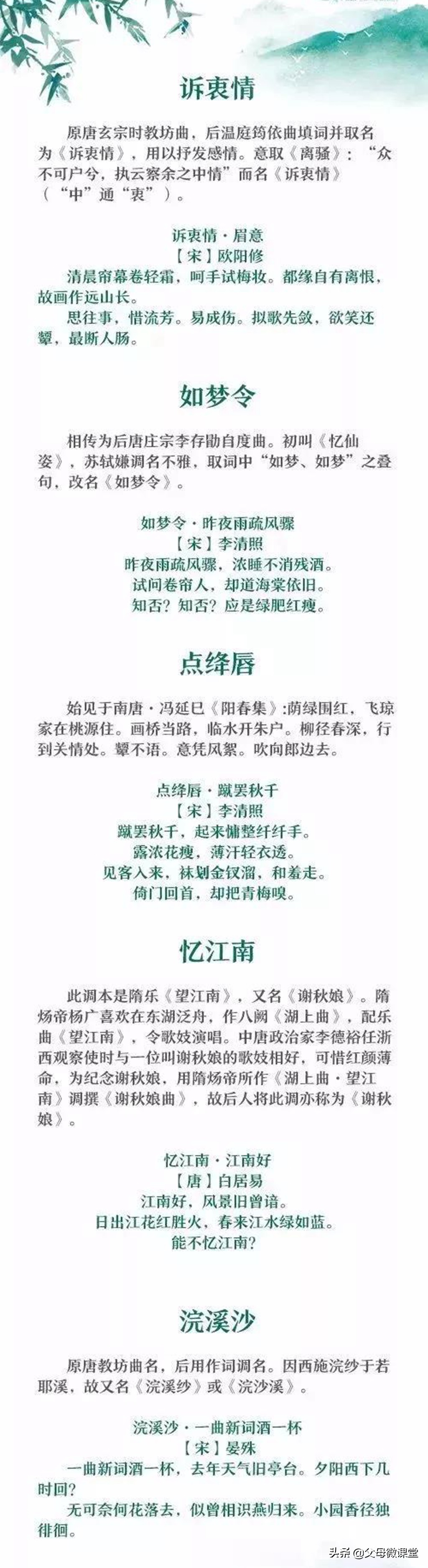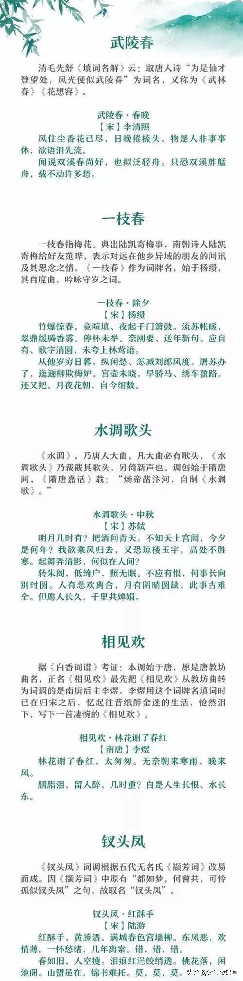 怎么样?这45个词牌名的由来,是不是很好的学习资料?赶快收藏、转发出去,让更多朋友受益吧!