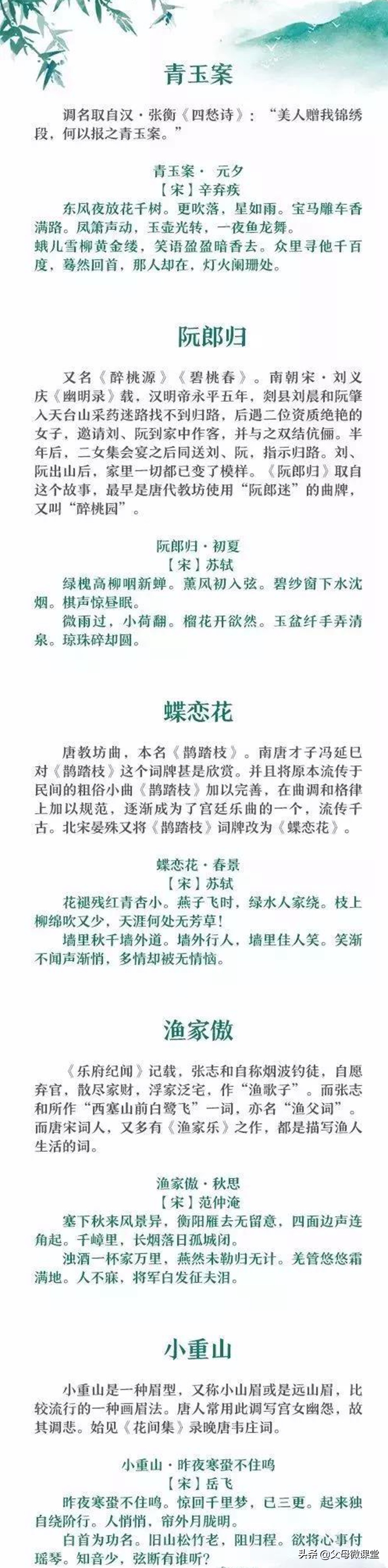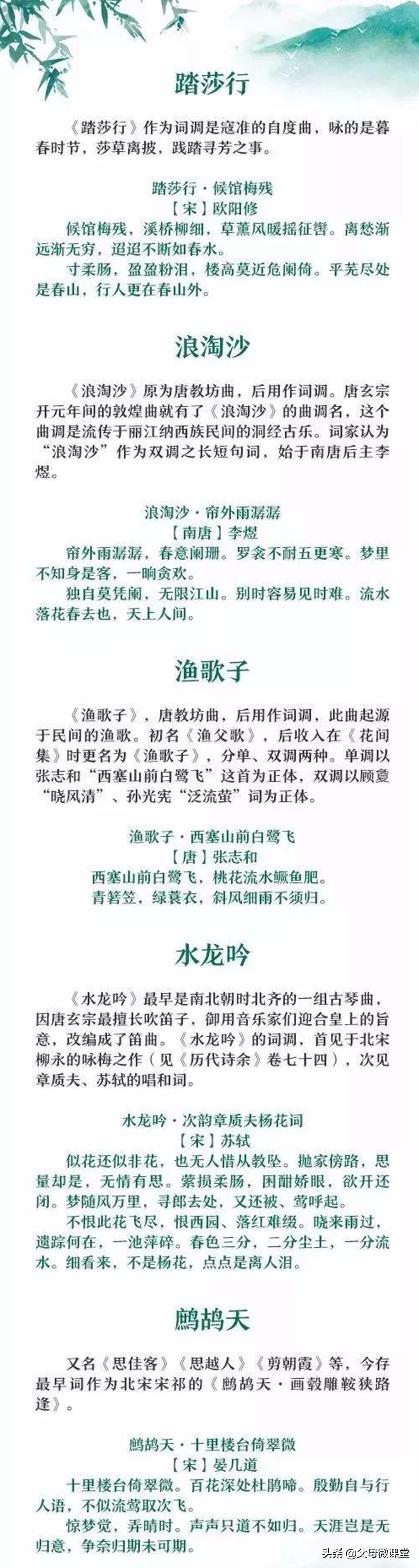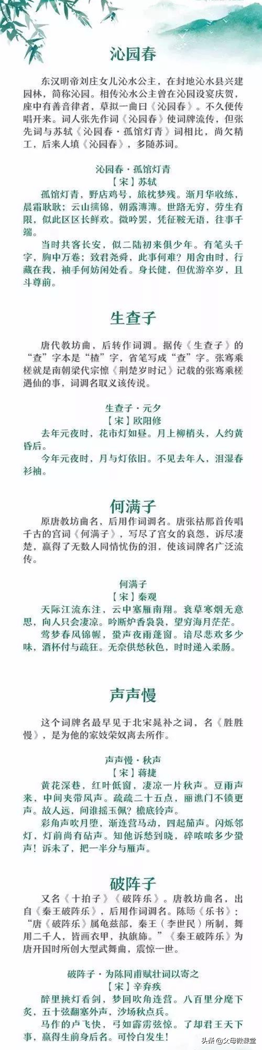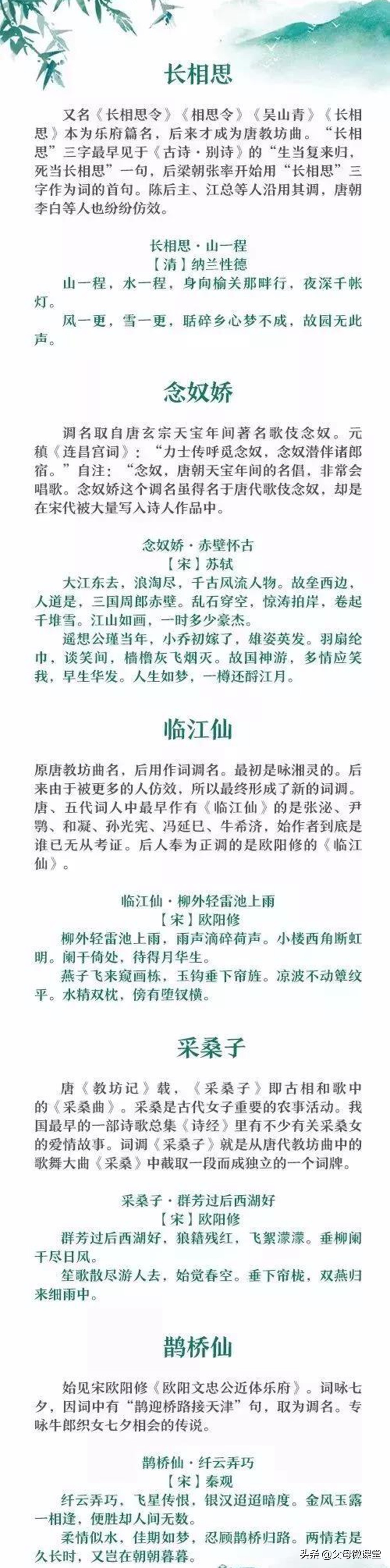 怎么样?这45个词牌名的由来,是不是很好的学习资料?赶快收藏、转发出去,让更多朋友受益吧!