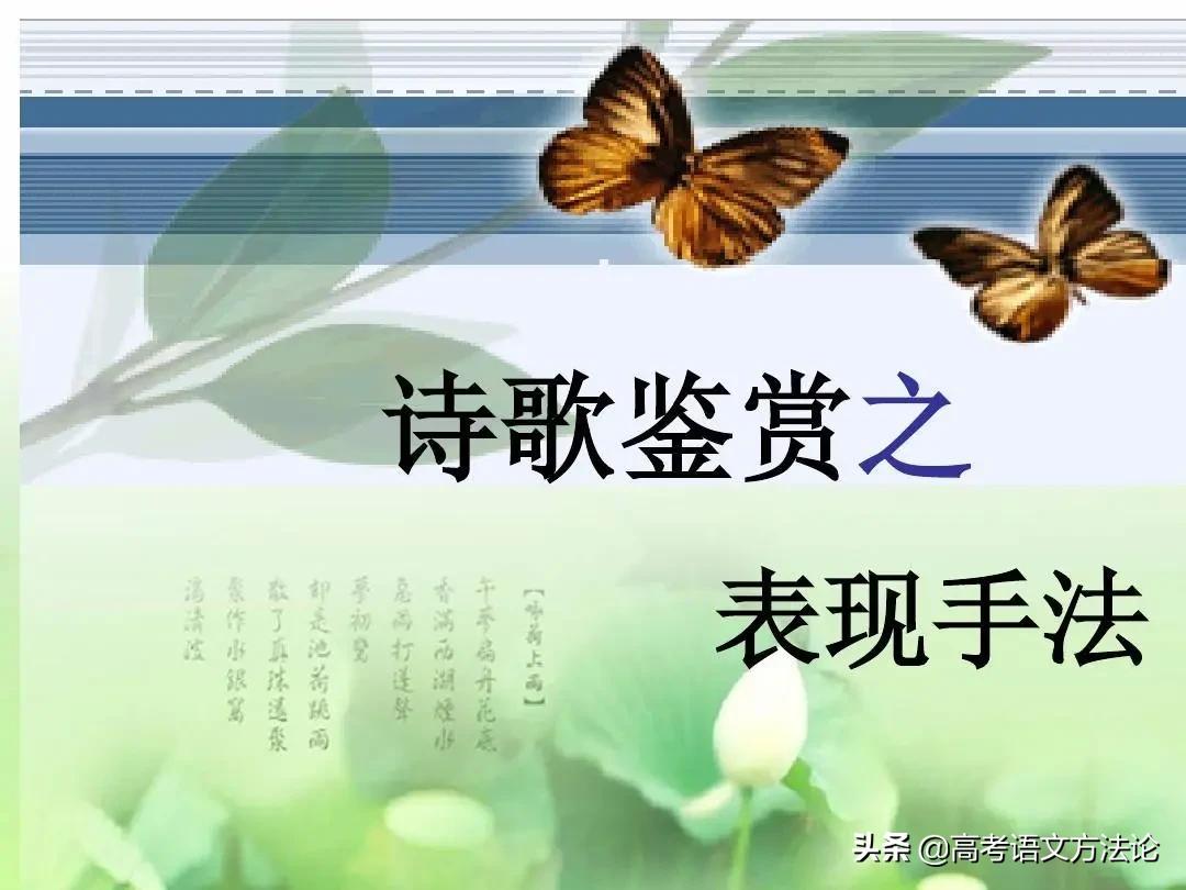 而在高考诗歌鉴赏中,常常会用艺术特色来命题,这时应该同时在表现手法和修辞手法中选用恰当的表现手法或修辞手法。