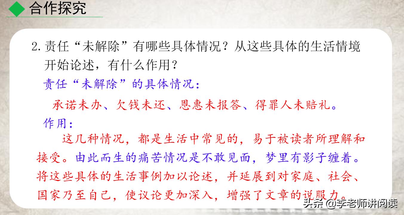 1.为什么“身上背着一种未了的责任”最苦呢?