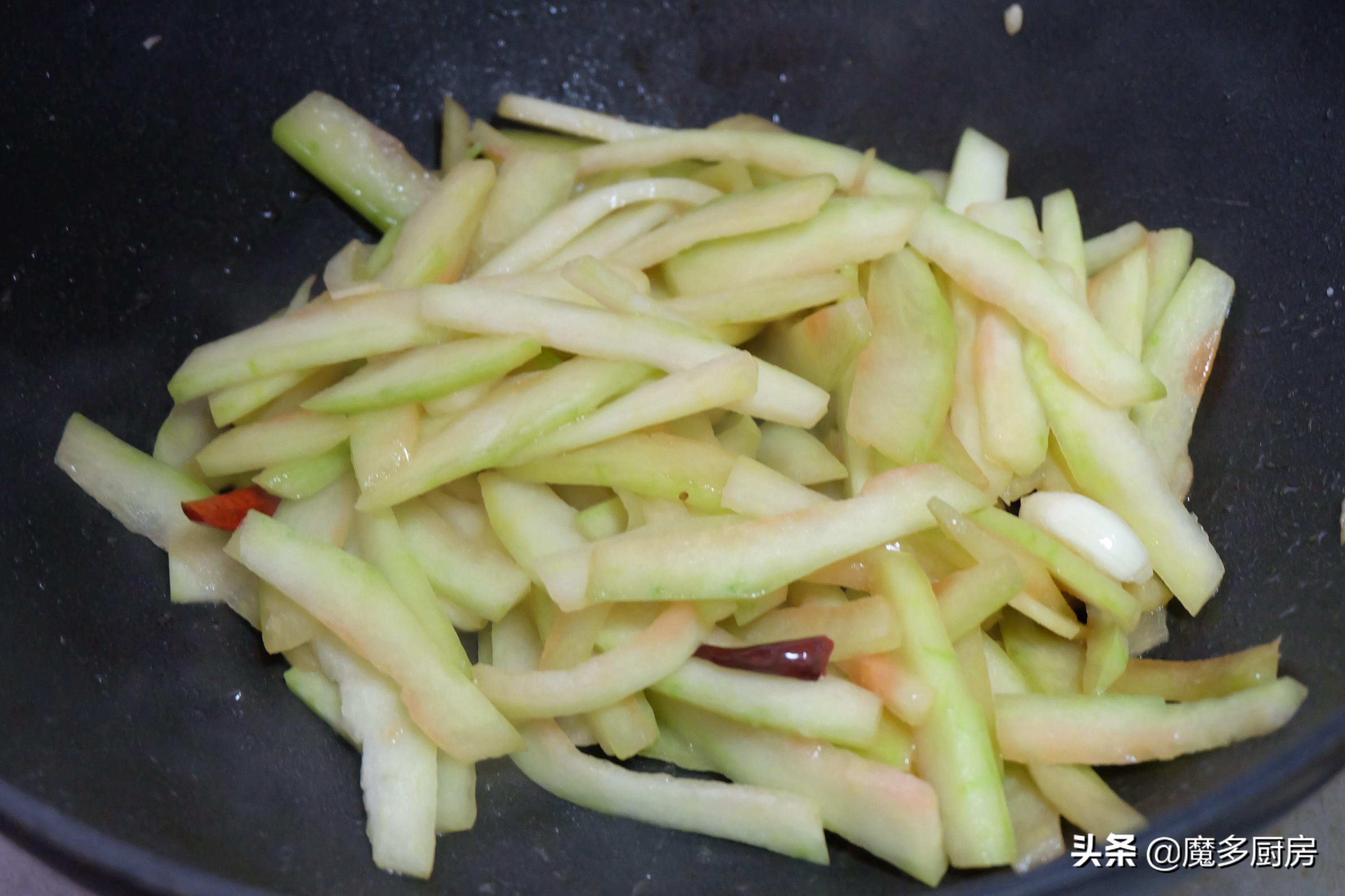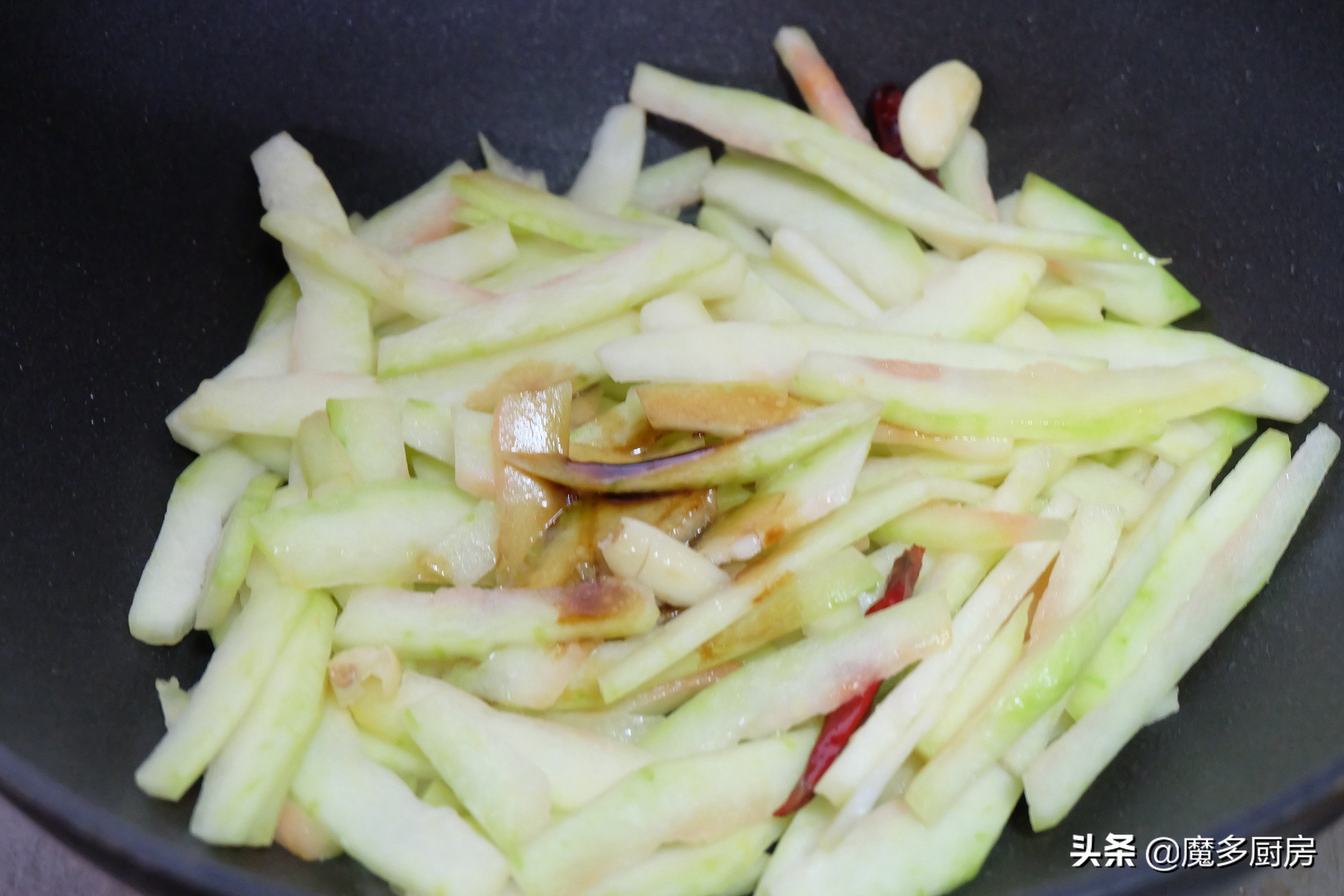 【食材及调味料】:西瓜皮适量、大蒜、干红辣椒、香葱、食用油、生抽酱油、盐;