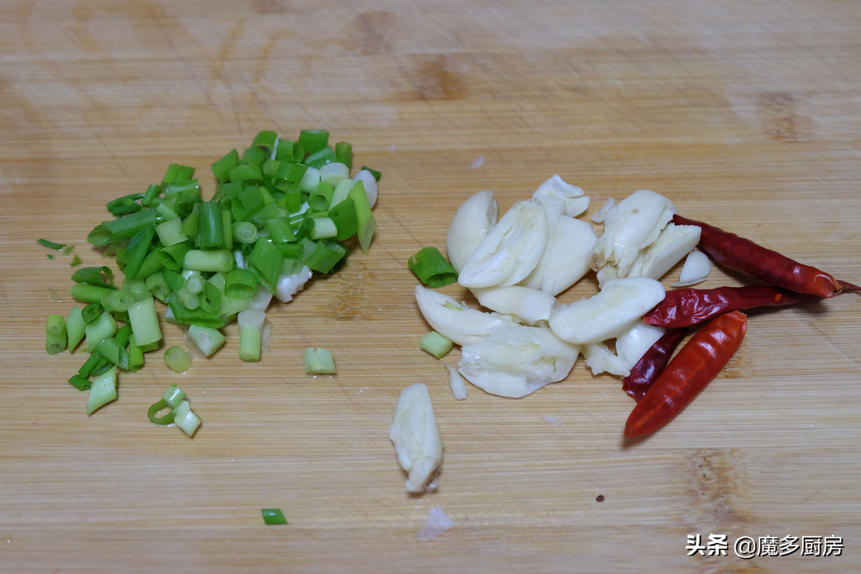 3、再准备一些大蒜、干红辣椒、香葱;