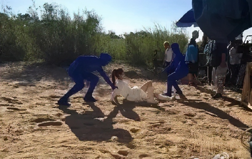 由于衣服单薄,裸露的手臂和大腿在沙地上来回摩擦,渗出的鲜血同沙子黏在一起。