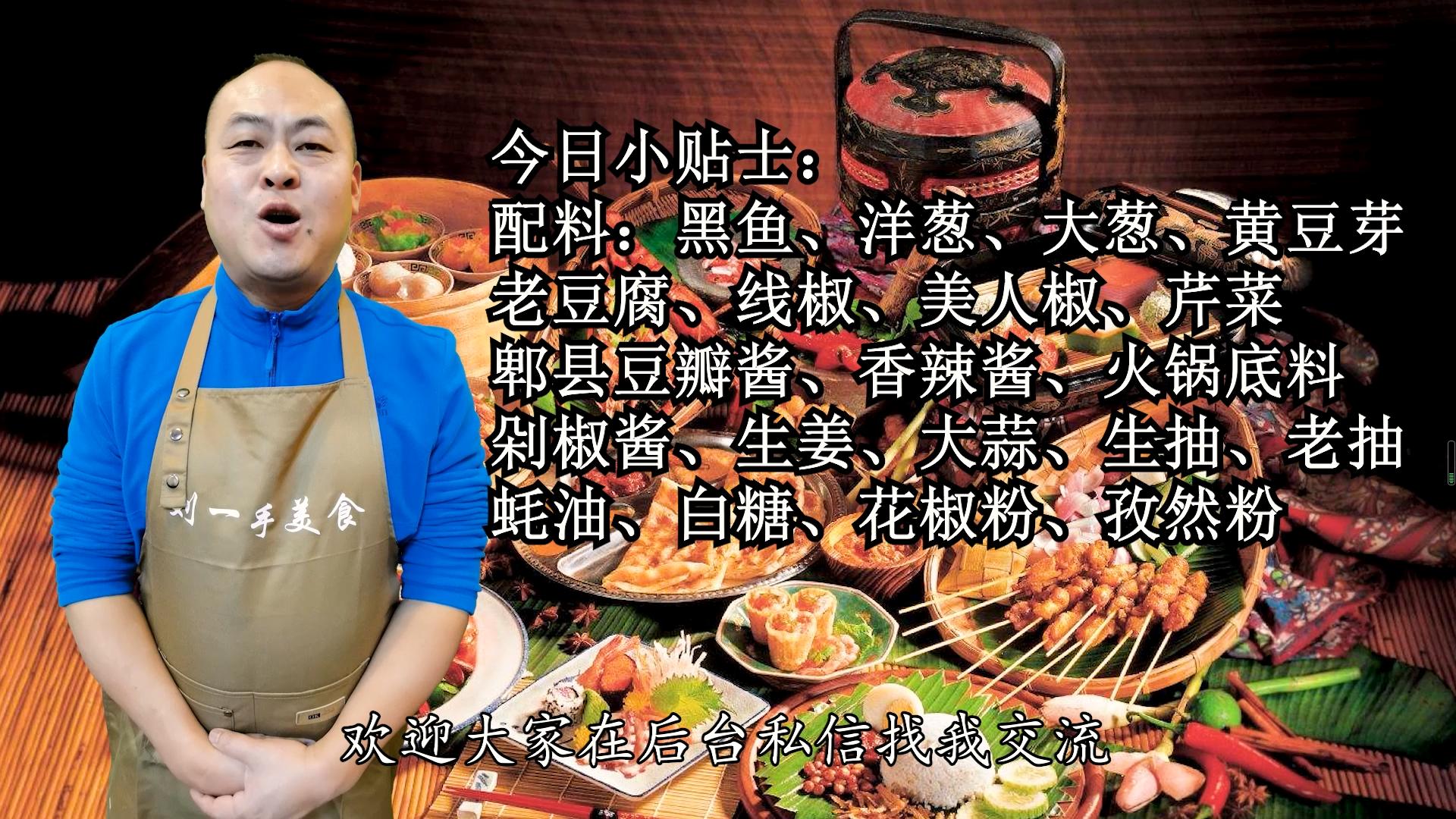 黑鱼、洋葱、大葱、黄豆芽、老豆腐、线椒、美人椒、芹菜、郫县豆瓣酱、香辣酱、火锅底料、剁椒酱、生姜、大蒜、生抽、老抽、蚝油、白糖、花椒粉、孜然粉