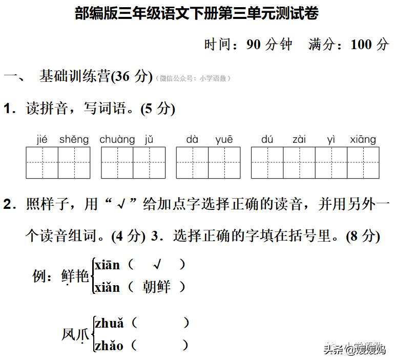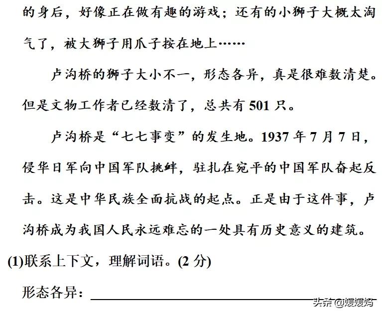 3.《赵州桥》以填空的形式考查第1自然段;以课内阅读的形式考查第2、3自然段。