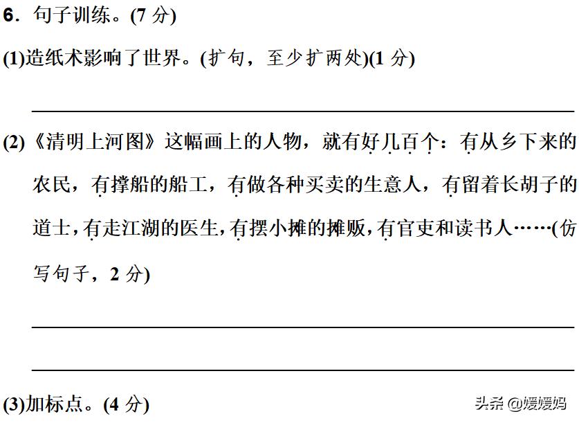 6.(1)示例:蔡伦发明的造纸术影响了整个世界。
