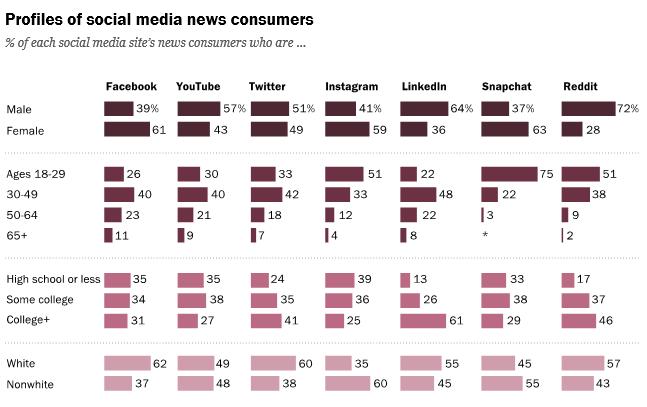 美国各主流社交媒体用户特征对比,图片来源:皮尤报告