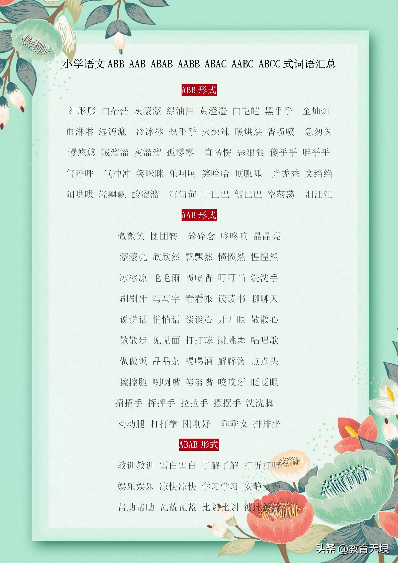 小学语文ABB+AAB+AABB+ABAB等词语+成语大全,小学生务必人手一份