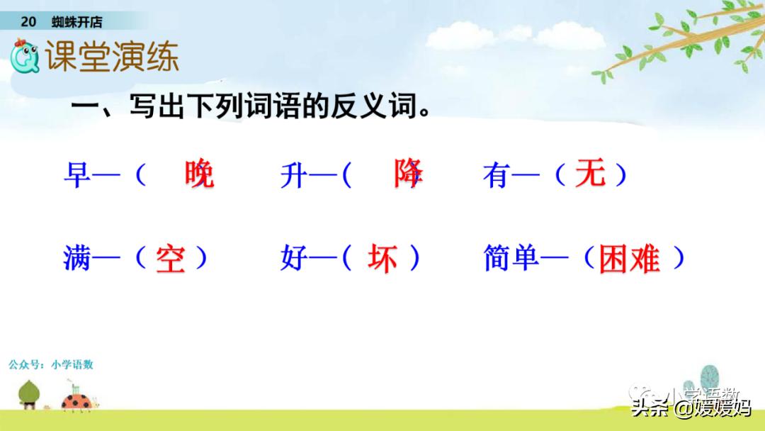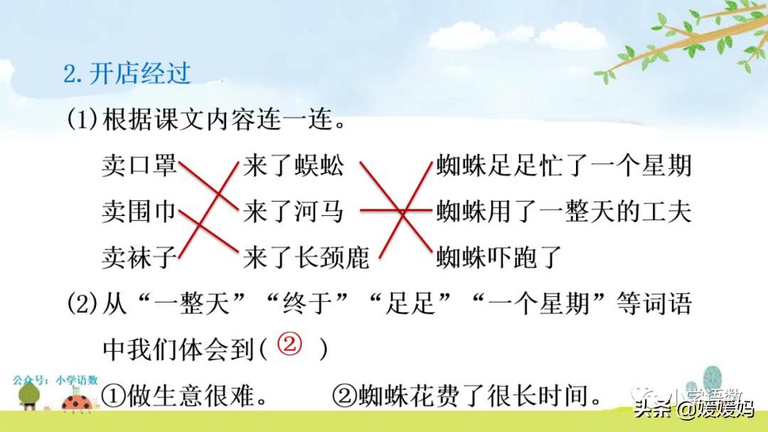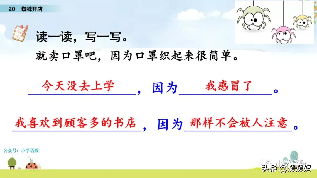 (1)有趣 困难 (2)蜘蛛觉得寂寞无聊 (3)口罩