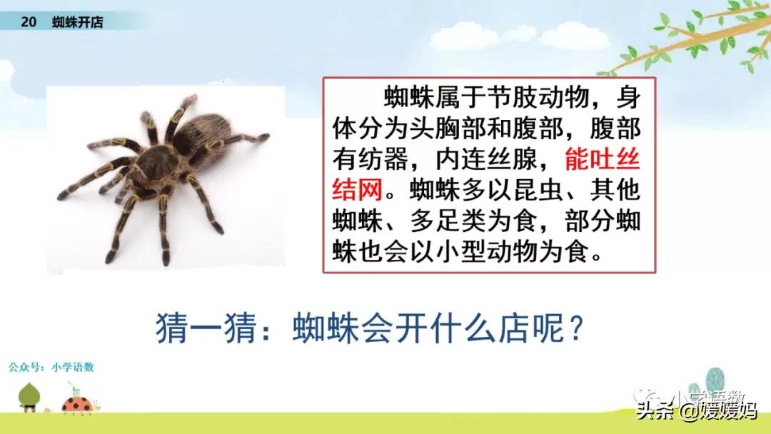 2、蜘蛛的招牌上都写了什么?你认为招牌这样写对吗?应该怎么写?