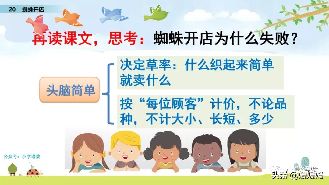 蜘蛛开店只图简单,没有认真考虑卖什么,怎样计价,而且朝三暮四,不能持之以恒,所以失败。