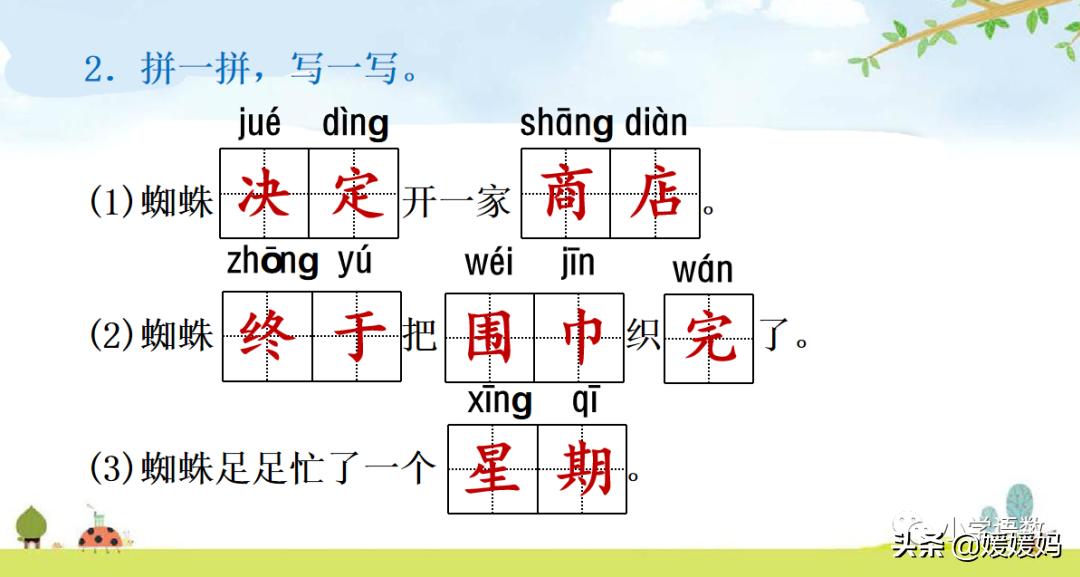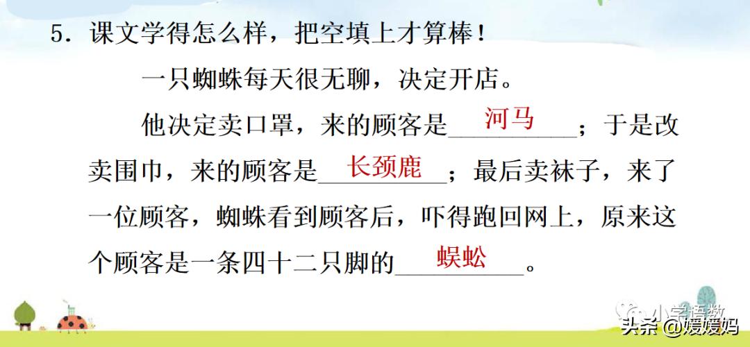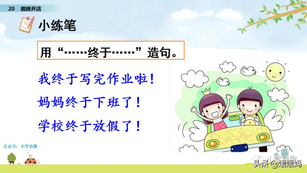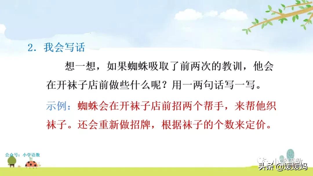 6.示例:我觉得蜘蛛开店还可以卖帽子,它可以卖给小松鼠。