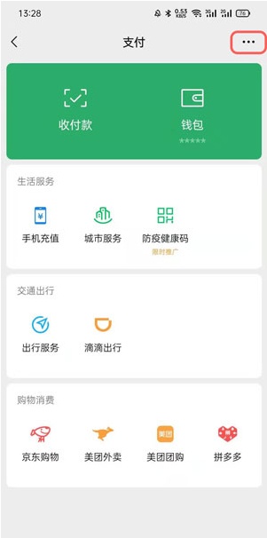 2、进入微信支付页面,点击右上角的【…】三个点更多按钮;