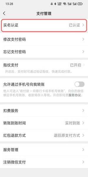 3、然后选择支付管理中的【实名认证】一项,进入查看并修改实名认证信息;