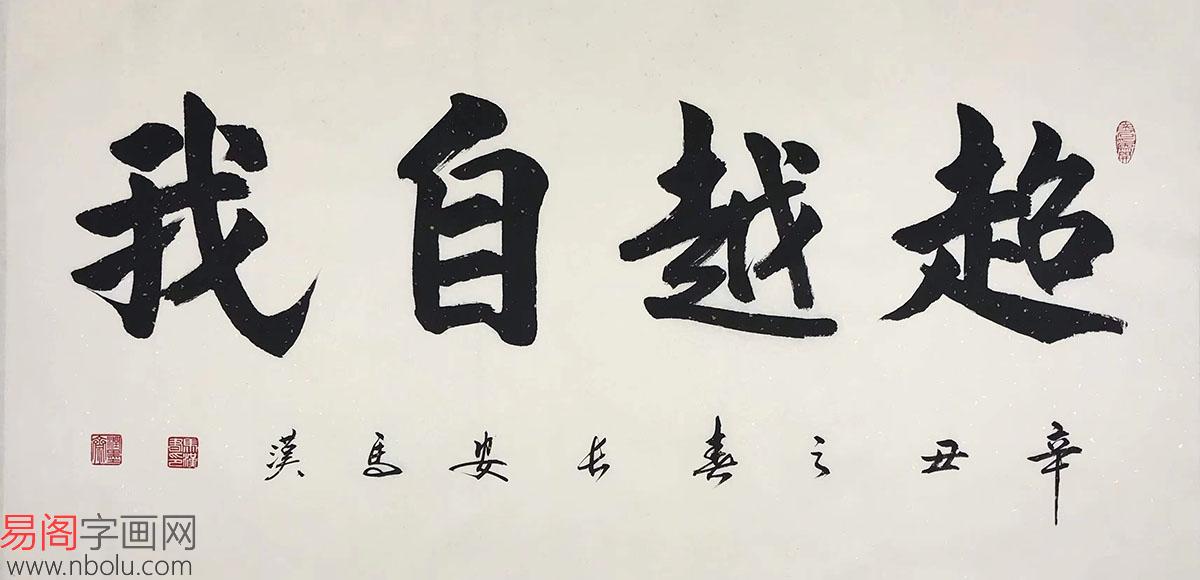 家里挂什么字画比较好 书画名家马汉行书书法四尺横幅《超越自我》(作品来源:易阁书画网)