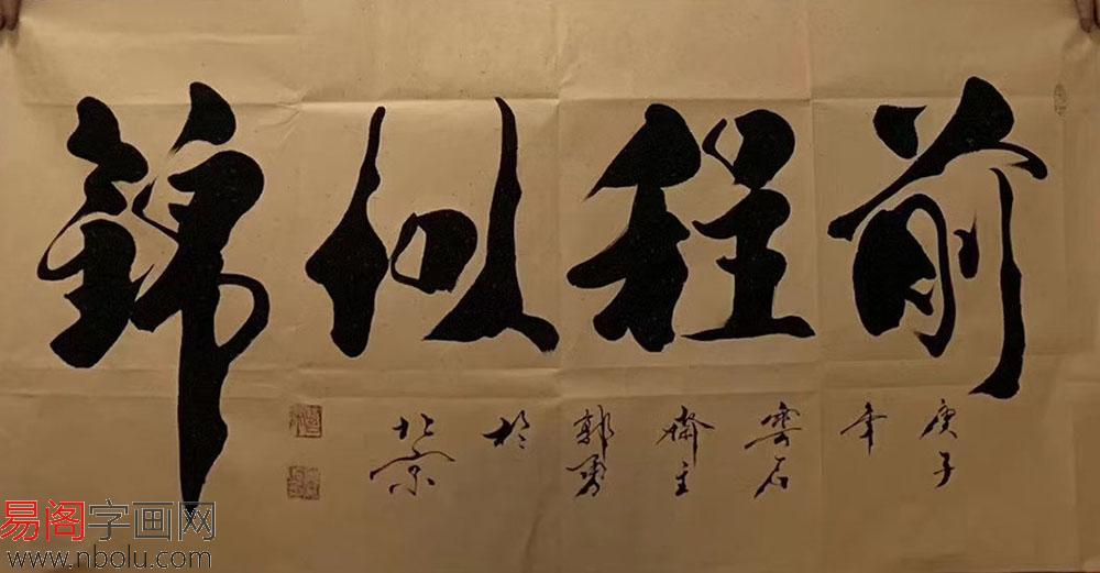 家里挂什么字画比较好 范曾大弟子 郭勇行书书法四尺横幅《前程似锦》(作品来源:易阁书画网)