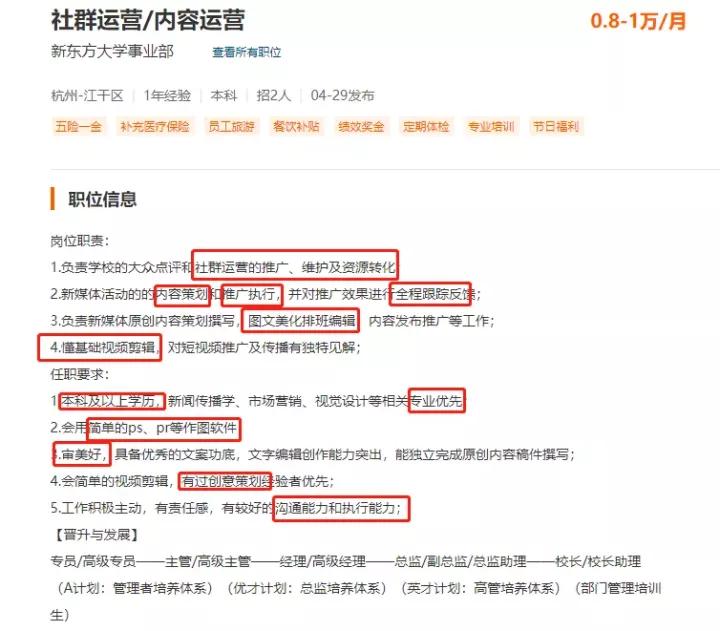 职前菌随机在前程无忧上找了些正在招聘的运营岗,我们先来看看企业用人要求。