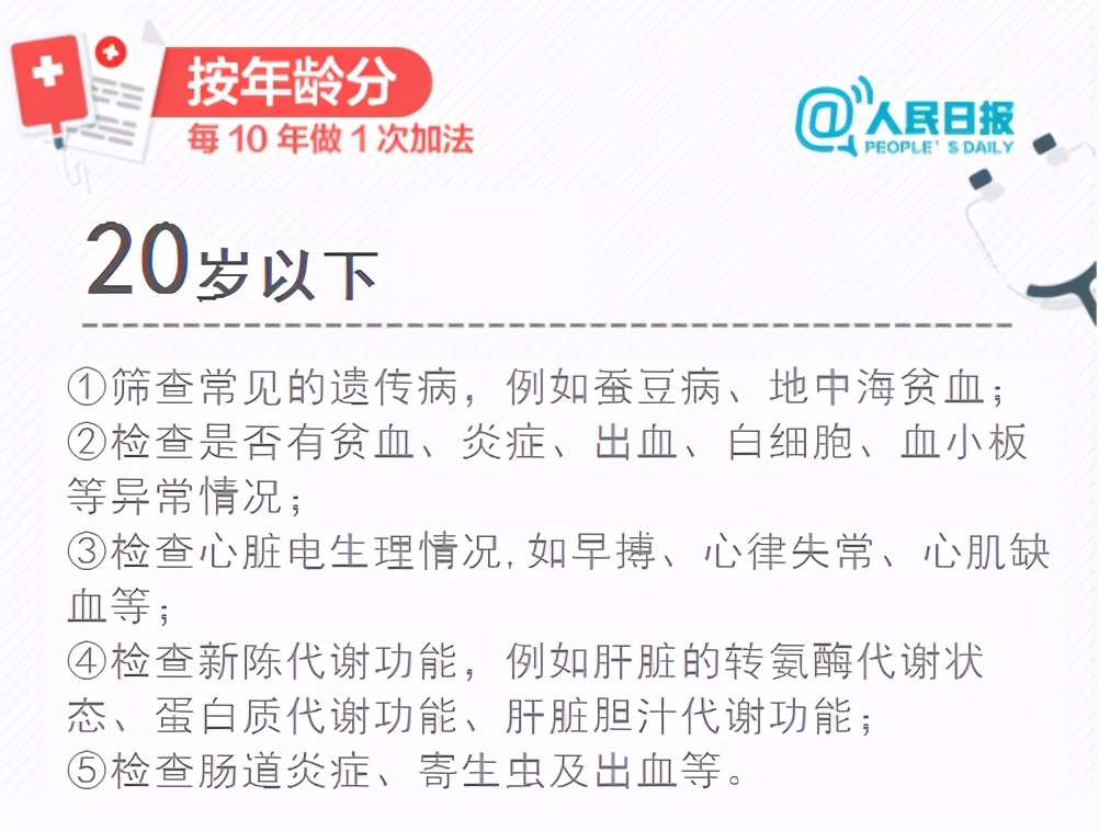 答:这个问题要细细地说清楚。不同年龄人群需要重点做的项目是很不一样的,我们一起梳理一下...