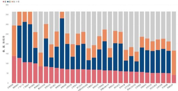 按照各主要城市四季天数,我们求出了每个季节的平均天数。答案是:春天不是最短的季节,秋天才是!