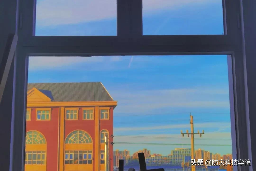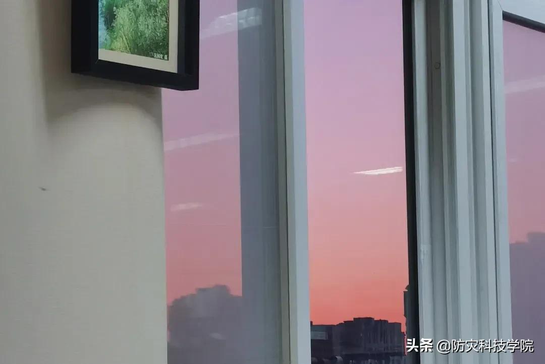 还有图书馆窗外美丽的粉色晚霞