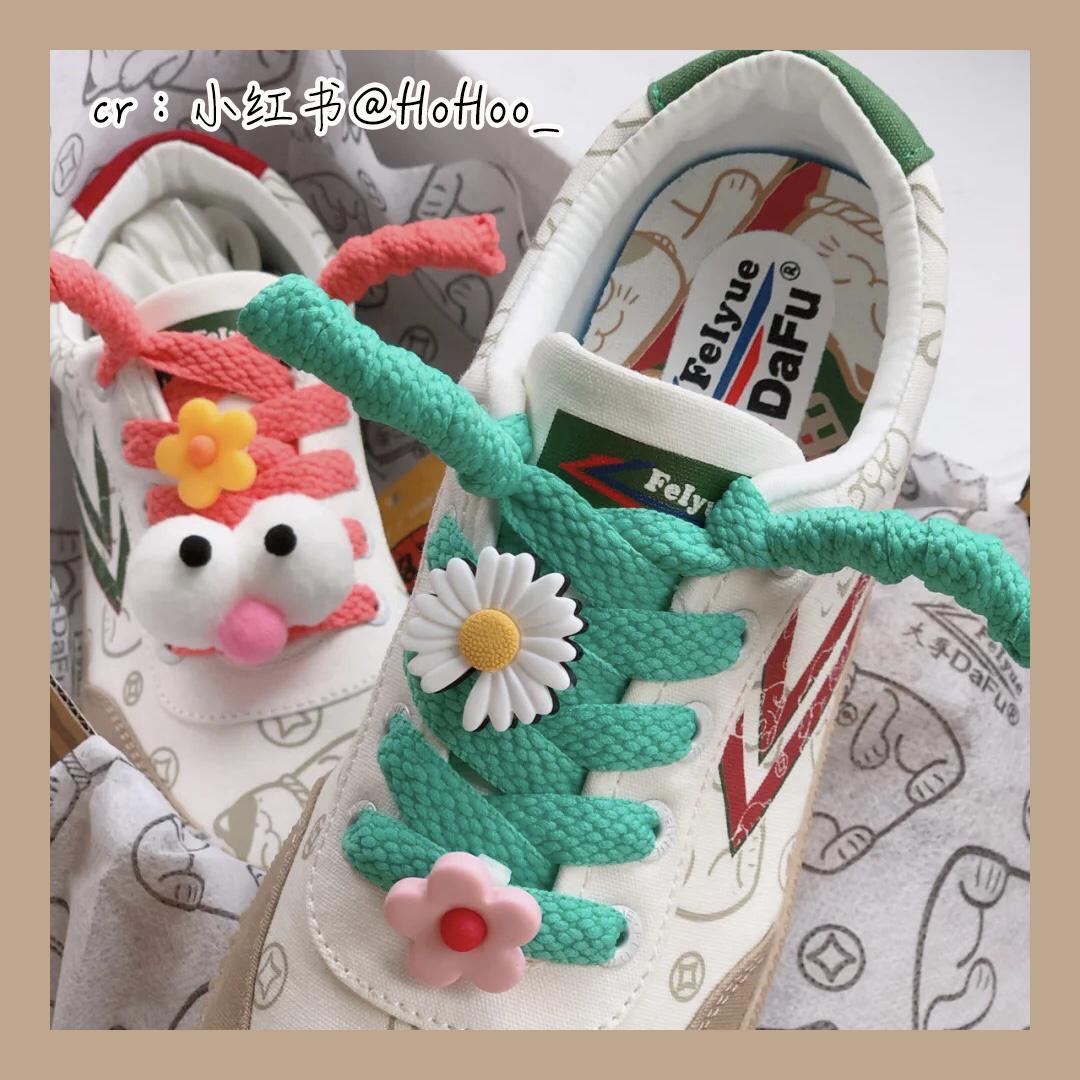 可以去??宝上买彩色鞋带和小配饰DIY,稍微装饰一下会更出挑!