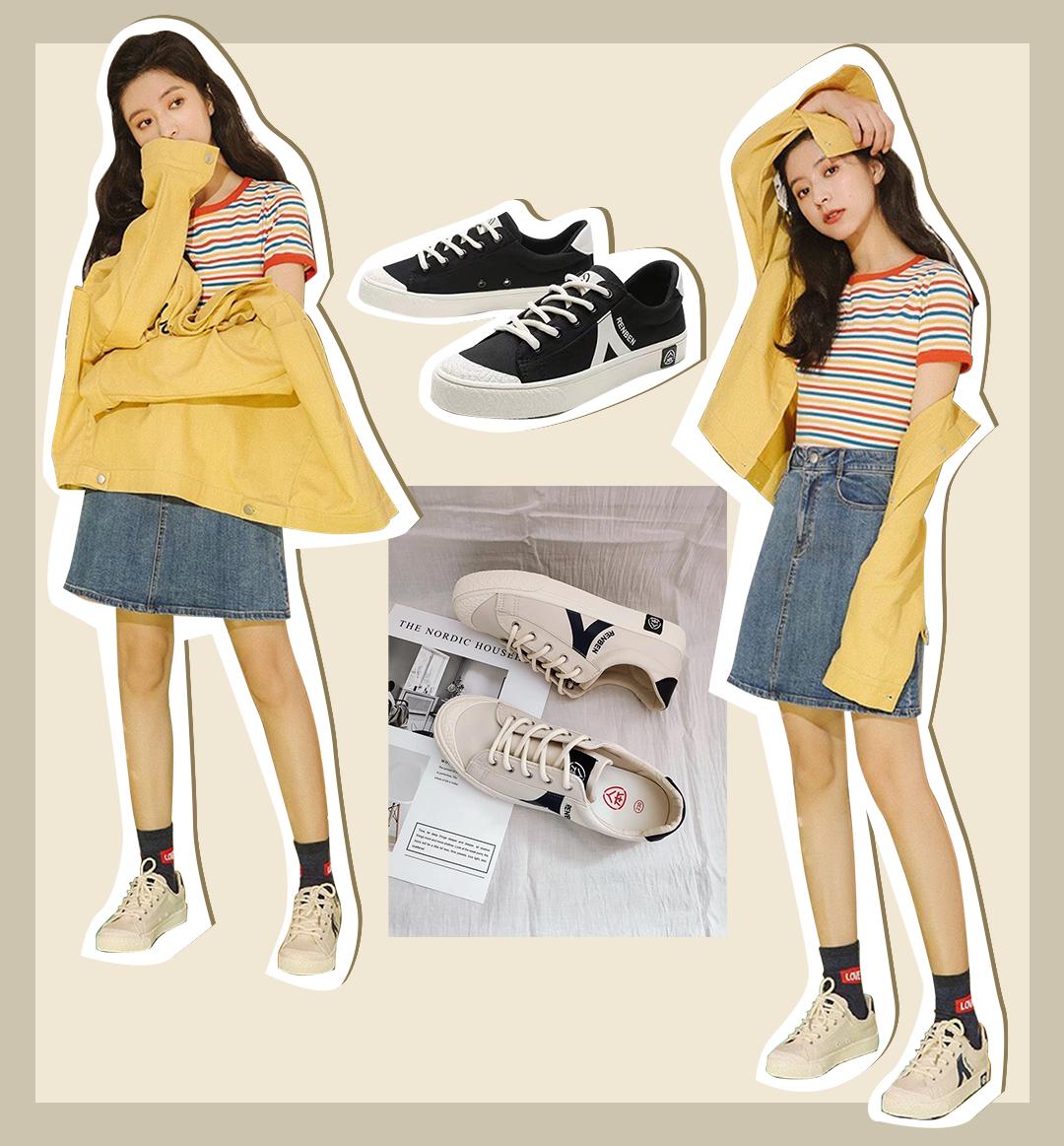 这款帆布鞋有黑色、米白色,都是平时穿不太会出错的颜色。