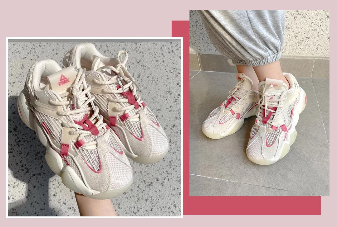 像匹克这样“悄悄变美,惊艳所有人“的品牌也非常值得pick,米白+脏粉的冰激凌配色有种甜酷风,还是春夏都常穿的网格面。