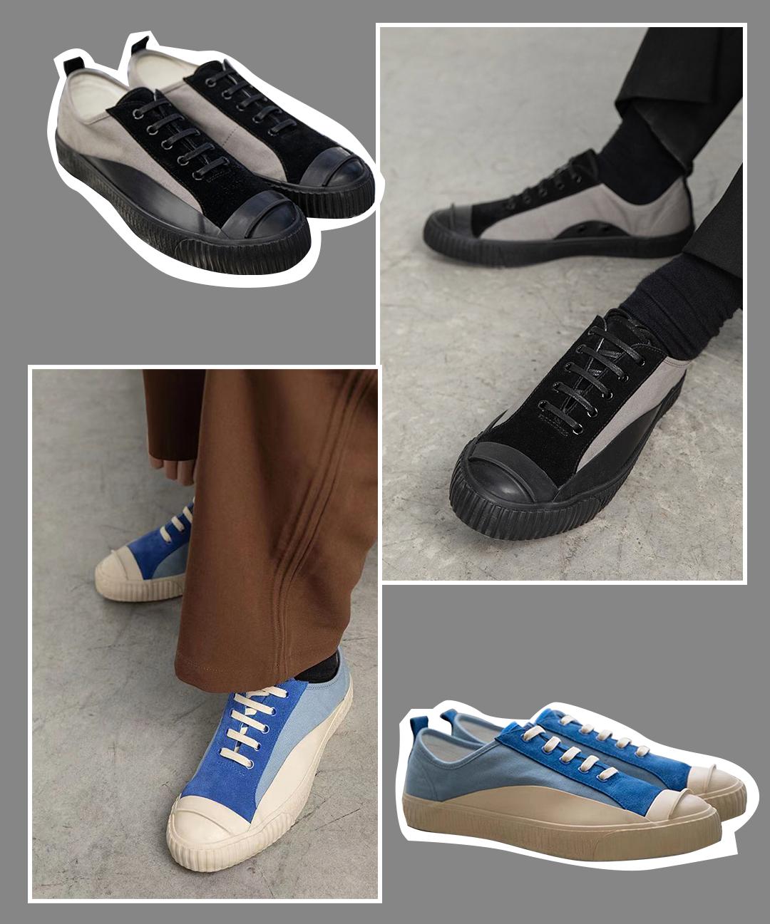 帆布鞋麂皮和胶皮混搭,不敢在衣服上彰显个性,可以考虑穿双带个人风格的鞋子,想走高冷风的还可以选黑灰拼。