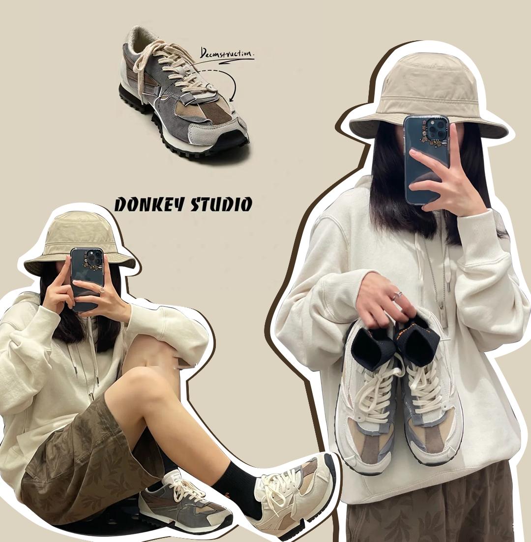 我最初入坑就是这双断底解构阿甘鞋,鞋面是做旧的反绒牛皮,几个颜色拼在一起意外好看,两侧的花色还不一样,设计很走心。