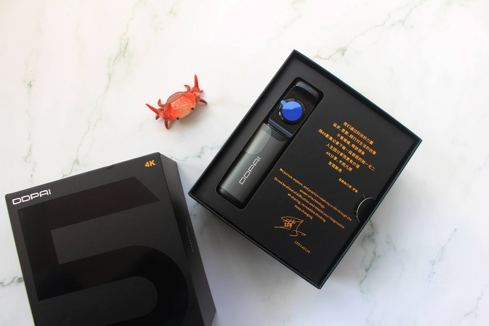 包装上,盯盯拍显然更简约了,除了左上角的品牌LOGO以及右上角的4K标志,整个正面就用一个“5”来表明产品型号。