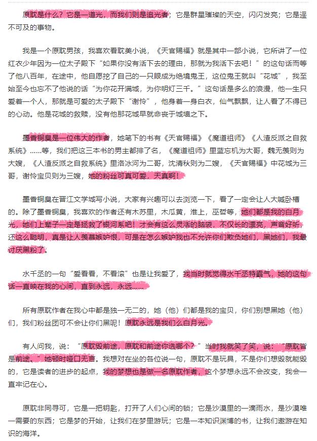 挂上了原耽的名头,似乎这整件事情就多了点自由表达抗争的味道,但是原耽说到底还是网络小说的一个分支,不要引用网络小说,是语文老师说了十几年的东西了。