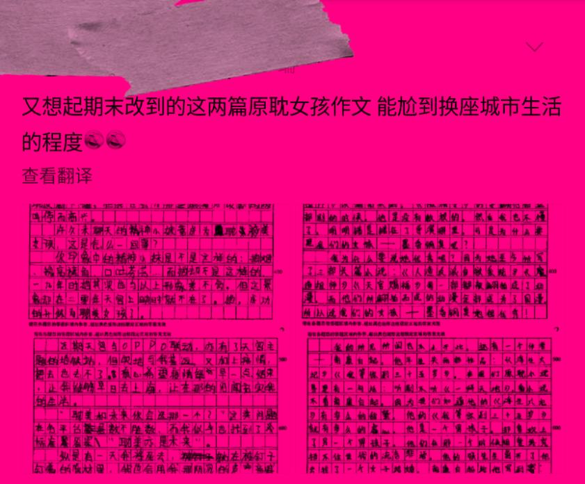 在院办那个时候,机改卷就已经是主流了,那就说明小朋友们的激情创作不仅会被一两名改卷老师看到,而是会被整个语文科组传阅,甚至会吸引到隔壁科组的年轻老师们,大家一起感叹人心不古。