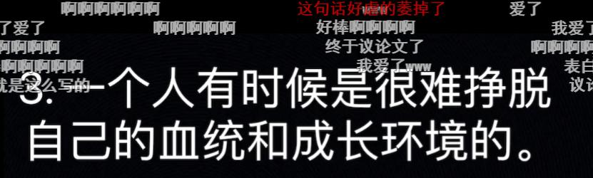 乍一看好像有点道理,但也不至于像弹幕里一样全都是“啊啊啊啊啊啊”“我真的好喜欢XXX”“绝了”那么超凡脱俗,但凡看过(曾经被网红一时的)《了不起的盖茨比》的第一页第一行都能找到比这句话更能得分的援引。