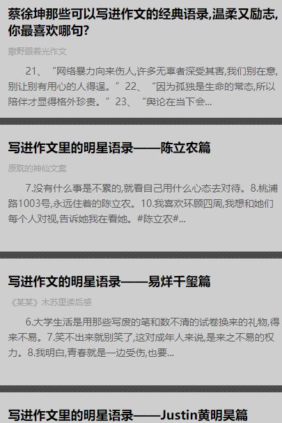 现在写进去的句子本来就不是名言,或者只是复述了之前就有的道理,更多的句子则只是属于锦上添花,那用啥不是用,用一手名言不好吗,逼格有保障,老师还看得懂,现在被用成了三手文字,是不是差点意思。