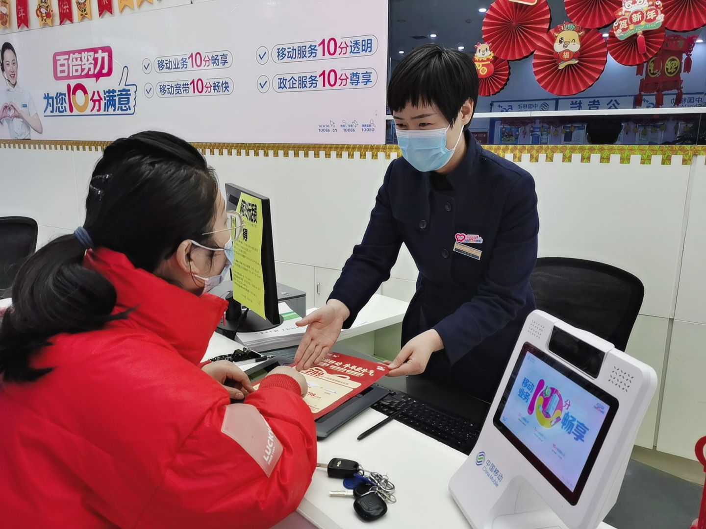 春节期间营业员们仍然坚守岗位服务客户,为客户解决棘手的问题,获得更优质权益的体验,消除客户通讯使用上的顾虑。