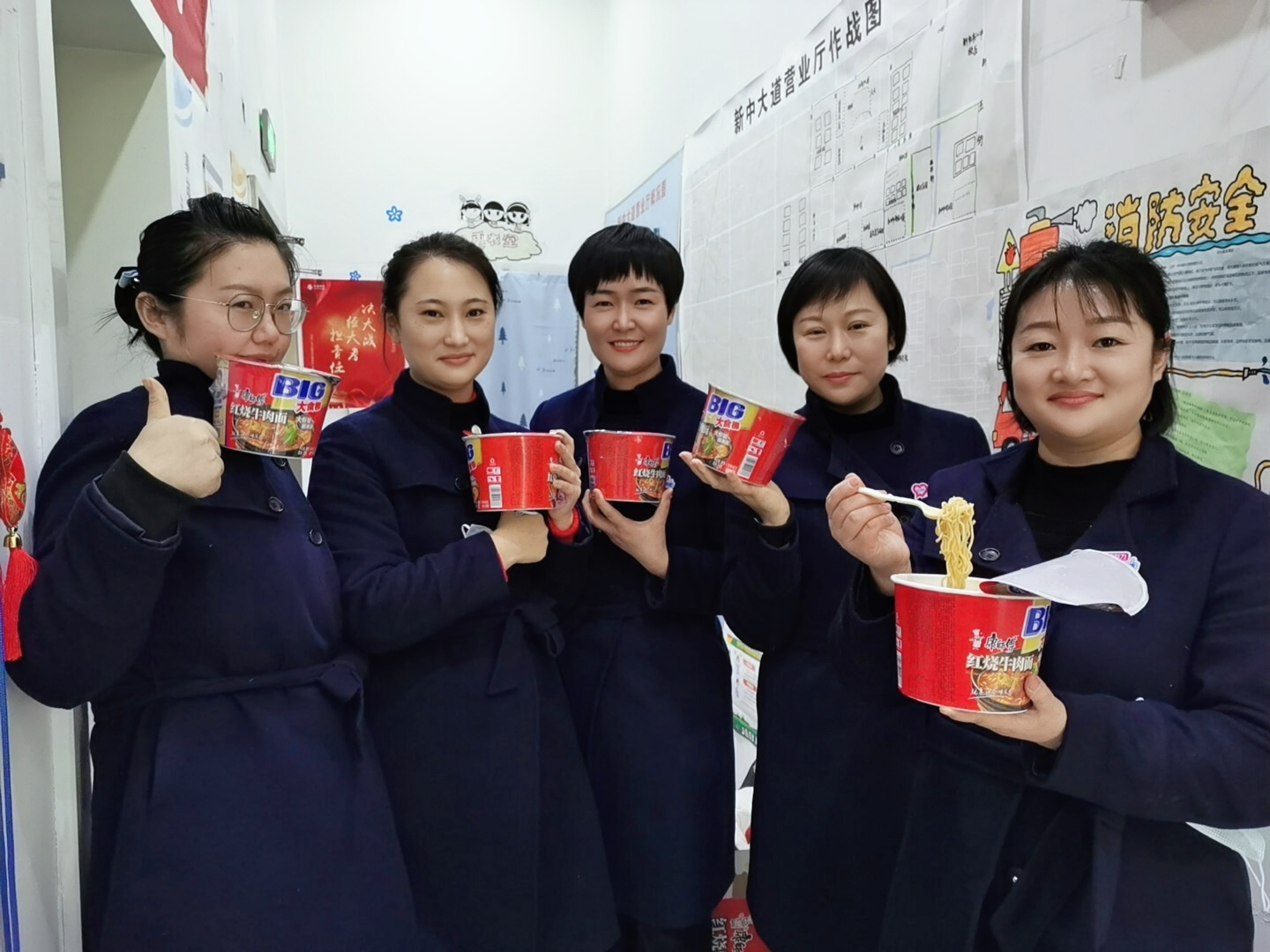 外卖停了,值班的营业员中午轮流吃着方便面,互相说笑着。看着热气腾腾的面,仿佛面香都飘出了屏幕。