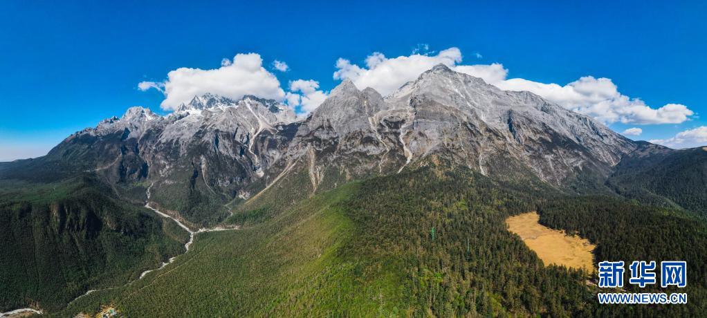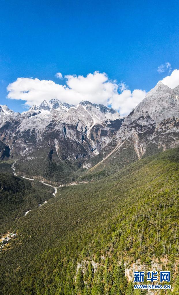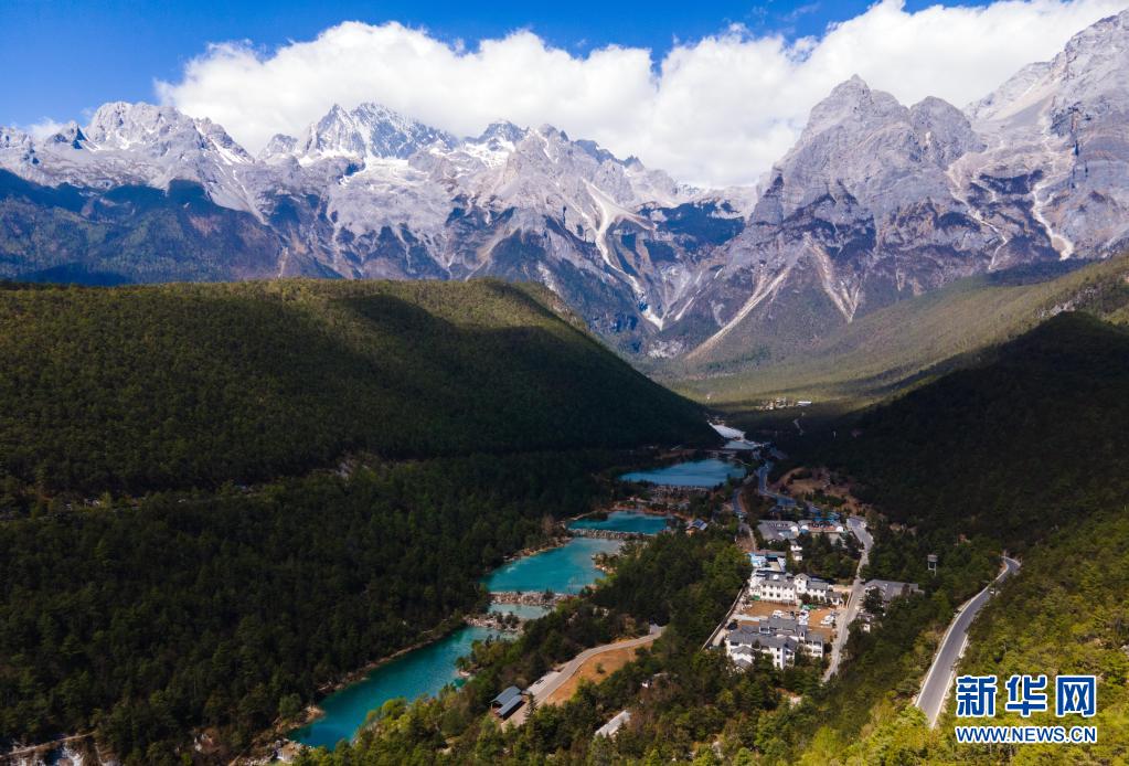 这是4月23日拍摄的玉龙雪山和蓝月谷(无人机照片)。