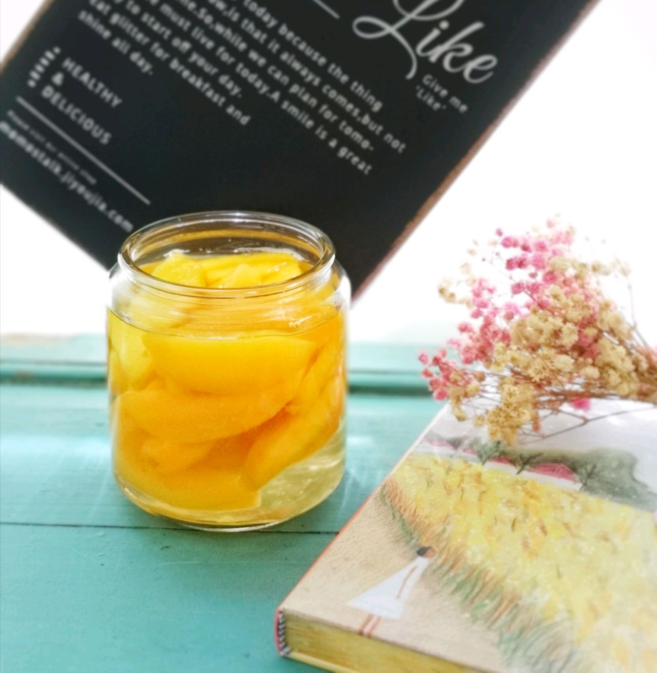 4、最后等到黄桃成熟之后,装在瓶子里面,晾凉之后备用就可以了。