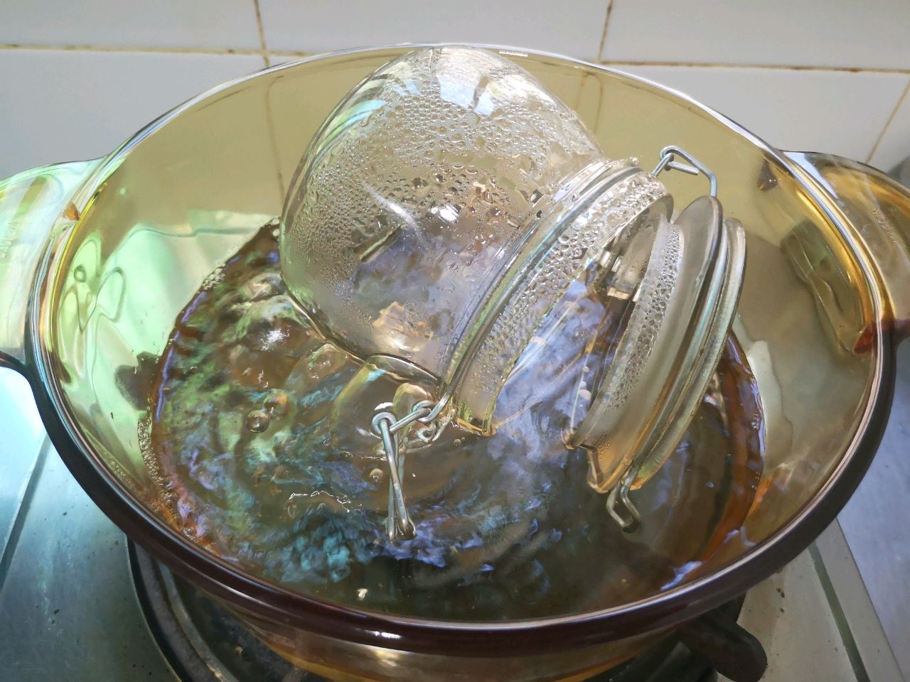 1、如果做得多的话,那就要有一个足够干净的容器来盛放做好的黄桃罐头,杀菌就很重要,所以把准备好的容器放在锅里面,用水煮10分钟左右,去除里面的灰尘杂质和细菌。